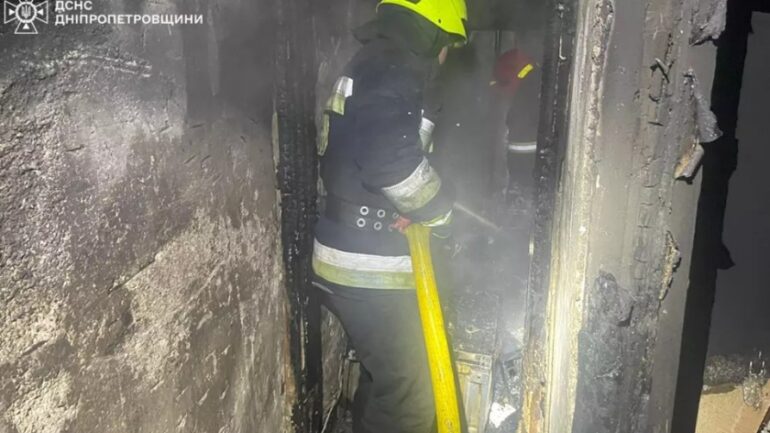 Увечері до Служби порятунку «101» надійшло повідомлення про займання квартири п’ятиповерхового житлового будинку на проспекті Олександра Поля Центрального району міста Дніпро. Горіло майно в квартирі, розташованої на четвертому поверсі. Площа пожежі становила 40 кв.м. Під час ліквідації займання вогнеборці врятували жінку,
