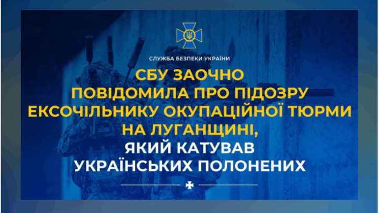 Служба безпеки України заочно повідомила про підозру колишньому керівнику окупаційної «виправної колонії №4» на тимчасово окупованій території Луганської області, який причетний до катувань українських військовополонених. За даними слідства, з жовтня 2022 року по січень 2024 року підозрюваний очолював незаконну установу, де