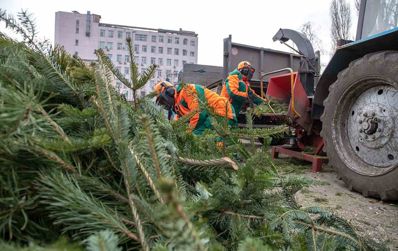 Із пунктів прийому ялинки передають на переробку – їх подрібнюють на щепу, яку надалі використовують для мульчування лунок молодих дерев. Це допомагає захистити коріння від перемерзання взимку та зберегти вологу ґрунту влітку.