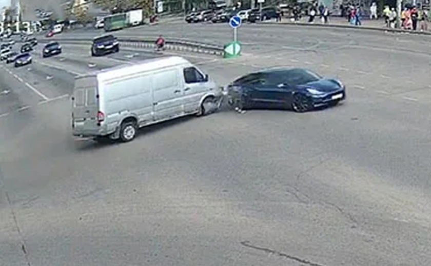 Сьогодні вдень, 17 жовтня, близько 13:08, на Слобожанському проспекті, в районі перехрестя з вулицею Калиновою, сталася аварія. Там зіштовхнулись Tesla та мікроавтобус. Больше новостей на reporter.ua