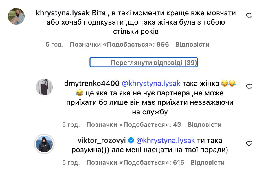 "Вітя, в такі моменти краще вже мовчати або хоча б подякувати, що така жінка була з тобою стільки років", – написала Розовому одна з юзерок.