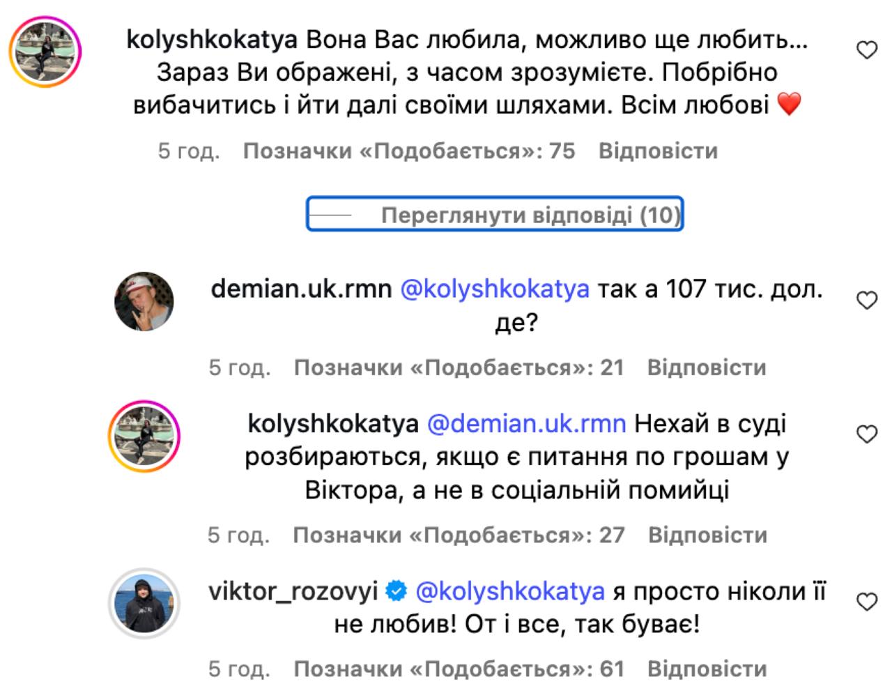 "Вона Вас любила, можливо ще любить… Зараз Ви ображені, з часом зрозумієте. Потрібно вибачитись і йти далі своїми шляхами. Всім любові", – йдеться в одному з коментарів.