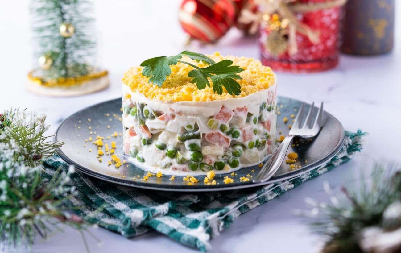 Олів'є та оселедець під шубою вже багато років є традиційними стравами українців на новорічному столі. У трійку лідерів також входить салат із крабових паличок.