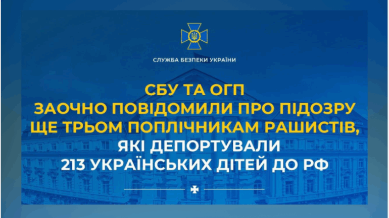 Служба безпеки України спільно з Офісом Генерального прокурора заочно повідомили про підозру трьом представникам окупаційної адміністрації рф, причетним до незаконної депортації українських дітей з тимчасово окупованої частини Донеччини. Серед підозрюваних – громадянин рф Михайло Кушаков, а також Олексій Кулемзін і