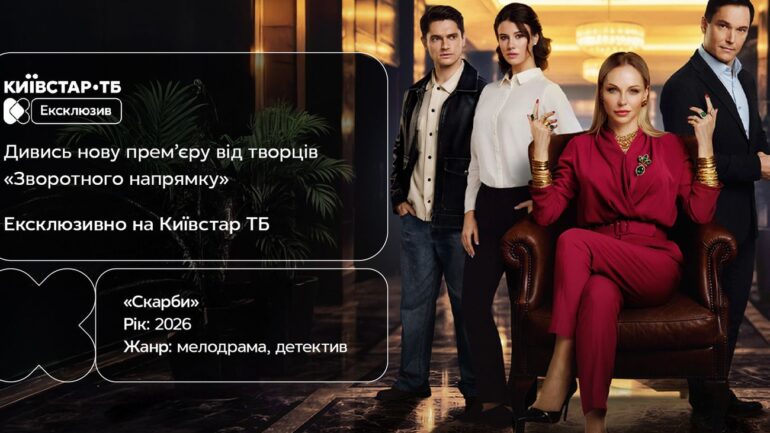 "Скарби" – новий проєкт від творців серіалів "Реванш" та "Зворотний напрямок" "Скарби" – новий проєкт, який поєднує атмосферу камерного детективу з емоційною сімейною драмою. Всі серії з’являться на платформі Київстар ТБ вже 9 березня – за тиждень до телевізійної прем’єри. Про це пише РБК-Україна з
