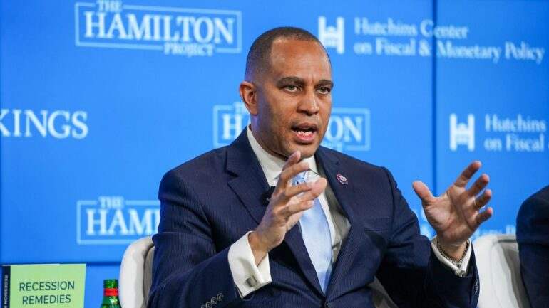 Демократи Палати представників США відмовилися підтримувати альтернативний законопроект з допомогою Україні, який пропонують республіканці. Про це повідомляє РБК-Україна з посиланням на пресконференцію лідера демократів у Палаті представників Хакіма Джеффріса. Він зазначив, що єдиний шлях забезпечити потреби