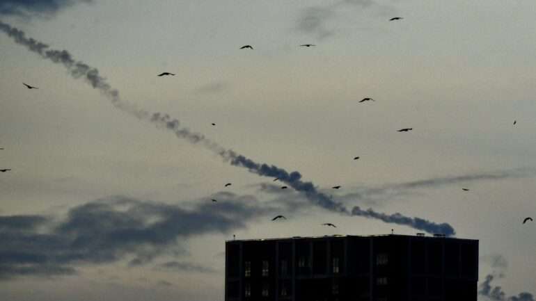 Під час масованого ракетного удару по Україні у двох районах Києва зафіксовано падіння уламків. Загорілася багатоповерхівка. Про це заявив голова Київської військової адміністрації Сергій Попко, повідомляє РБК-Україна з посиланням на КМВА. "Зафіксовано падіння уламків також в Подільському та Святошинському районах