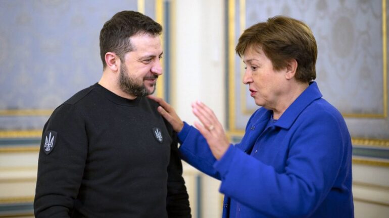 Президент України Зеленський зустрівся з директором МВФ Крістіною Георгієвою. Це було в рамках робочої поїздки до Вашингтона. Про це повідомляє РБК-Україна з посиланням на сайт президента України Володимира Зеленського . Президент України подякував МВФ за своєчасну та суттєву допомогу, надану Україні з початку