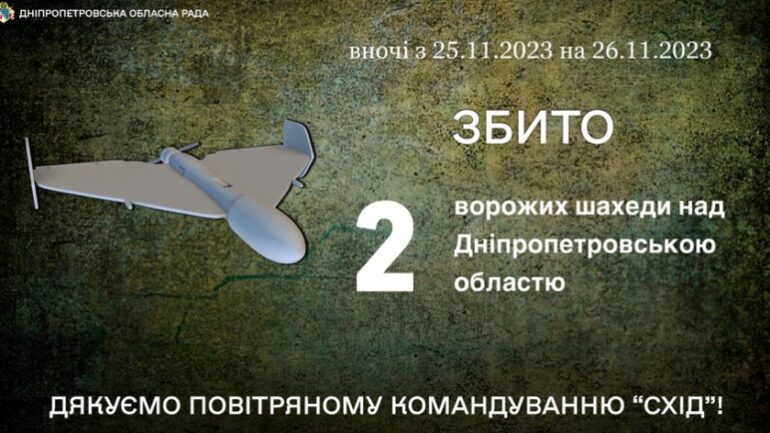 Сьогодні вночі, 26 листопада, захисники неба з ПвК «Схід» ліквідували два безпілотники над Новомосковським та Синельниківським районами. Також ворог бив по Нікопольщині з артилерії. Больше новостей на