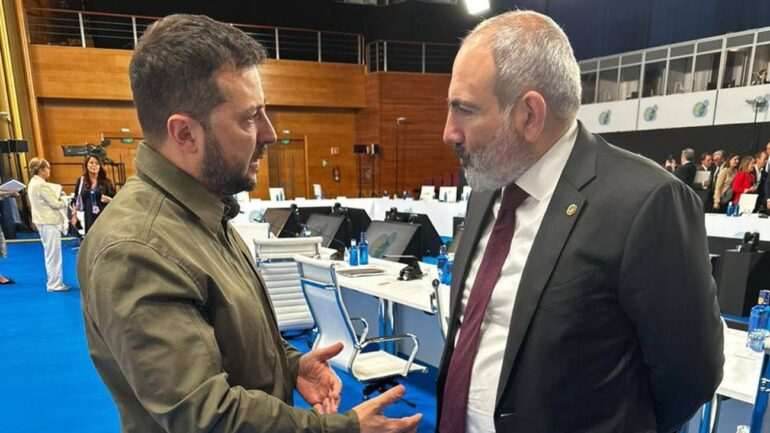 Під час візиту до Італії президент Володимир Зеленський вперше зустрівся з прем'єр-міністром Вірменії Ніколою Пашиняном. Про це повідомляє РБК-Україна з посиланням на Telegram-канал президента. За словами президента, під час зустрічі з Пашиняном вони порушили питання безпекової ситуації на Південному Кавказі. Україна, зі