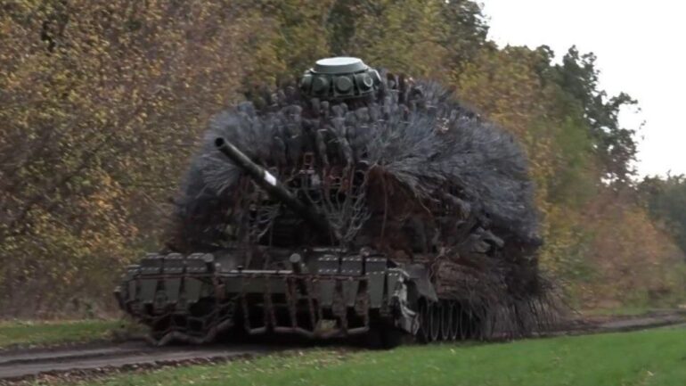 У РФ, як і в Україні, для захисту танків від дронів створюють захисні споруди. Однак російська конструкція, що робить танк схожим на їжака, навпаки, ламає техніку. Про це повідомляє РБК-Україна з посиланням на Defence Express. Видання зазначило, що нещодавно російські Т-80БВМ і Т-72БЗМ були помічені із захистом, з яким "машина стає