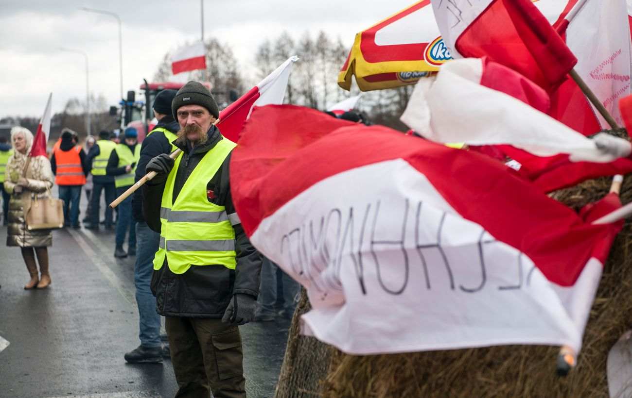 Вчора, 20 лютого, на протесті польських фермерів на кордоні з Україною помітили плакат, на якому закликають російського диктатора Володимира Путіна "навести порядок в Україні та Брюсселі". Поруч з ним був прикріплений прапор СРСР.