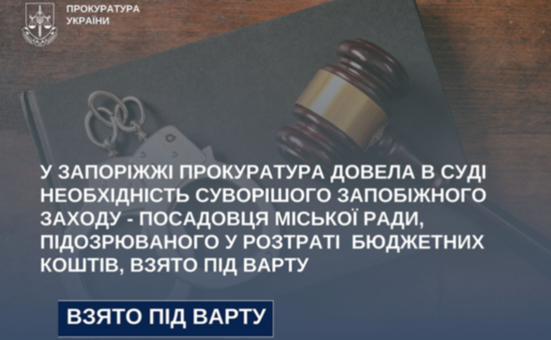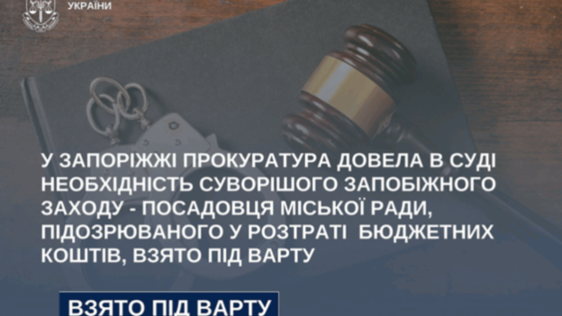 Запорізький апеляційний суд задовольнив апеляційну скаргу обласної прокуратури та змінив запобіжний захід керівнику одного з департаментів міської ради з нічного домашнього арешту на тримання під вартою з правом внесення застави.