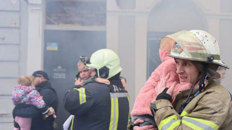 Станом на 12:15 відомо, що серед дітей постраждалих немає. Терехов уточнив, що під час загрози ударів вихователі евакуювали їх у підвальне приміщення. Наразі рятувальники вивели всіх дітей.