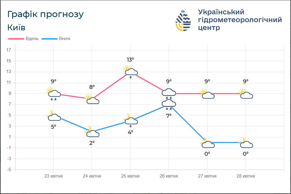 Графік прогнозу погоди по Києву від УкрГМЦ (скриншот: meteo.gov.ua)