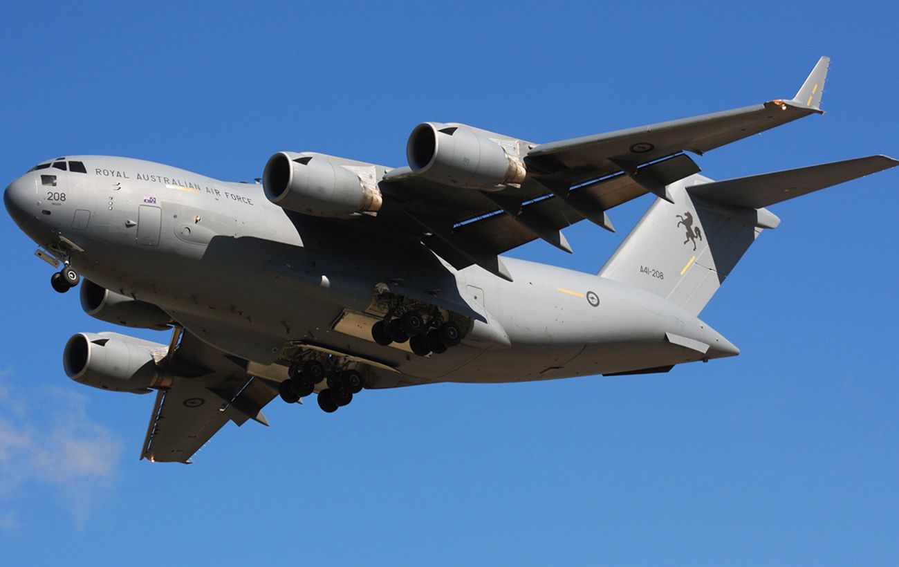 C-17 Globemaster III – це вантажний літак, здатний перевозити танки, автомобілі, боєприпаси, а також людей. Його вантажопідйомність складає 77,5 тонн і може перевозити до 134 пасажирів або 336 парашутистів.