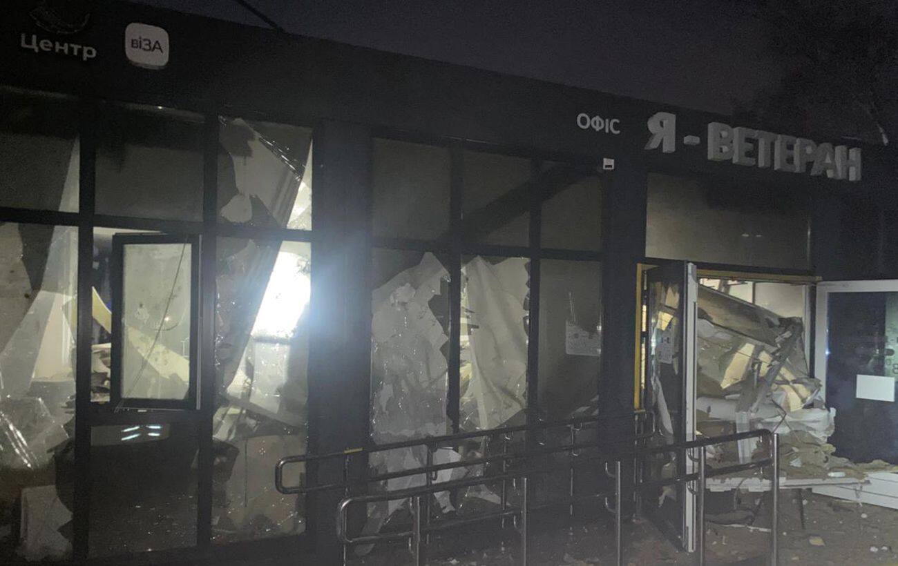 Центр надання адміністративних послуг "Я-ВЕТЕРАН" та "Віза" після нічної атаки на місто (фото: Олександр Вілкул / Telegram)