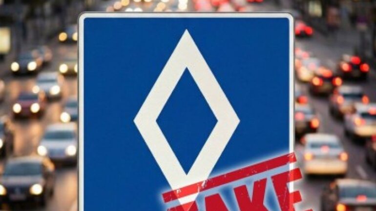 За інформацією патрульної поліції, мережею шириться неправдива інформація про впровадження в Україні нового дорожного знака — «білий ромб на синьому фоні».