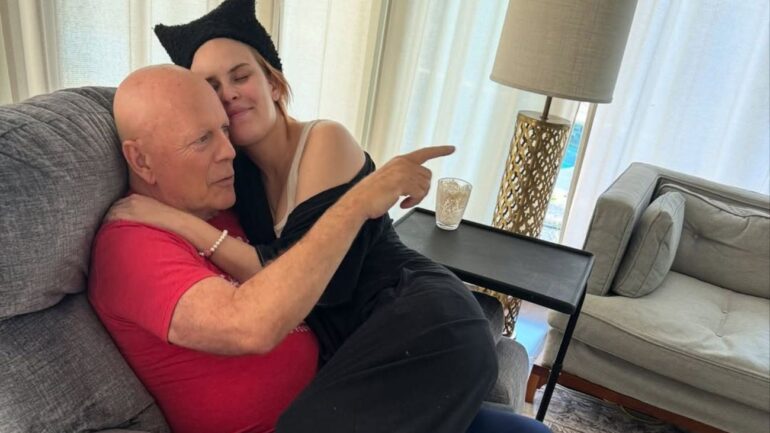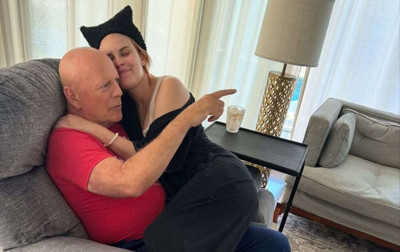 На фотографії 70-річний актор позує разом із доньками в домашній атмосфері. Скаут ніжно обіймає батька, а Таллула сміється, тримаючи його за руку та поклавши долоню на його голову.