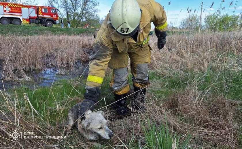 Загруз у багні: у Синельніковському районі надзвичайники врятували собаку